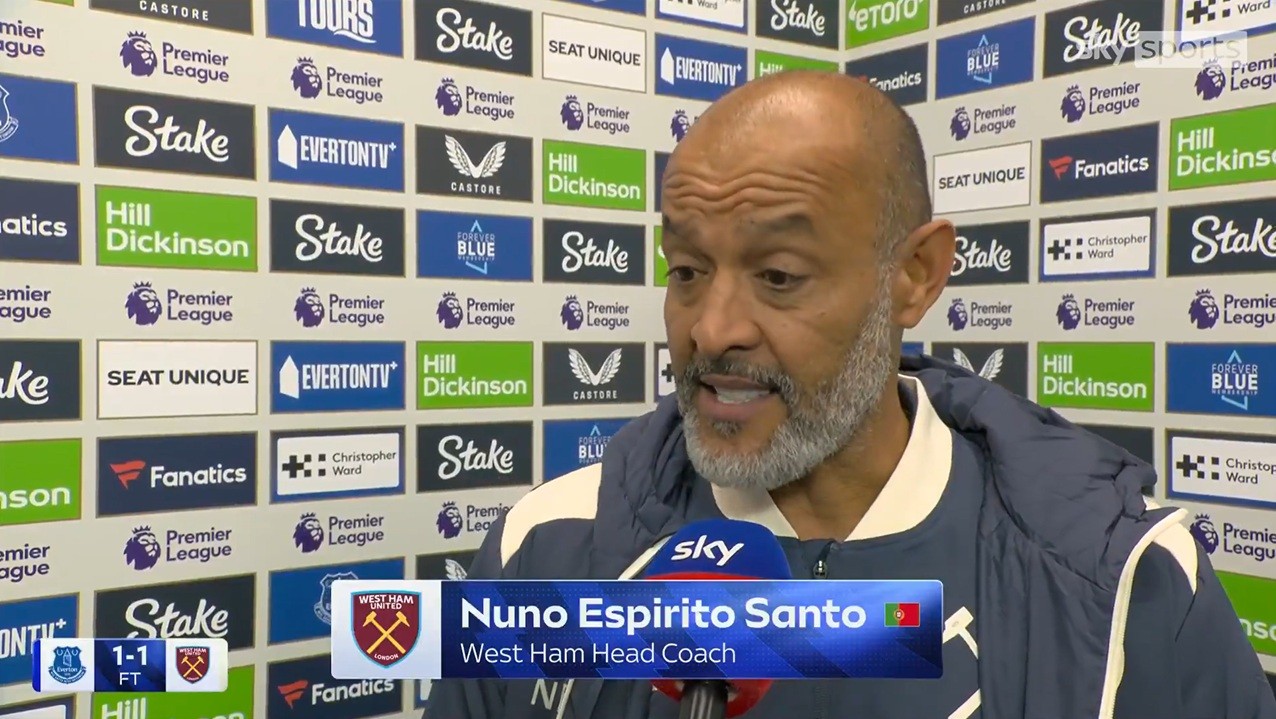 在执教首战1-1战平埃弗顿后,西汉姆联主教练努诺接受了天空体育的专访。